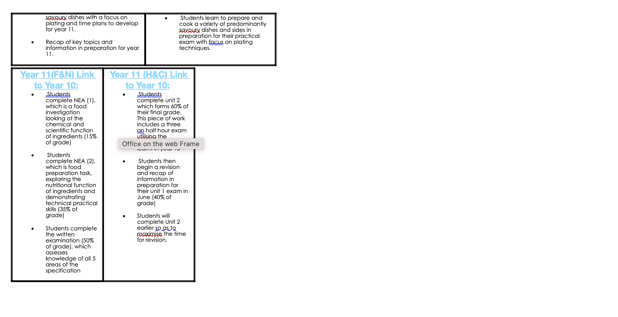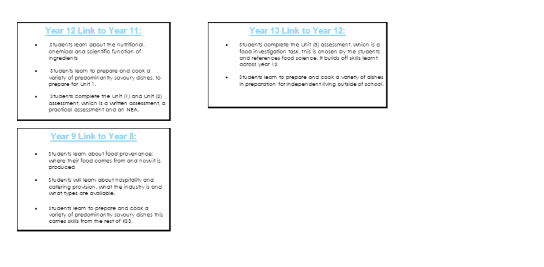 Our curriculum is developed with an awareness of social, cultural, and economic diversity. Carefully selected recipes, adaptive lesson planning, and targeted support for key subgroups of students ensure all learners can access and thrive within our subject. The students have the opportunity to explore the subject across KS3 and KS4 with a GCSE food preparation and nutrition or Level 2 hospitality and catering.